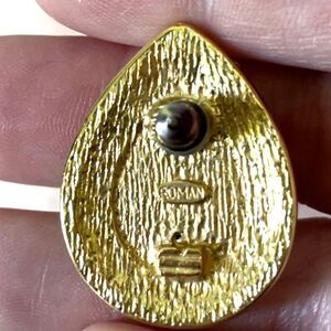 VTG Signed Roman Black Stone Clear Crystal Rhinestone Teardrop Earrings Gold T.