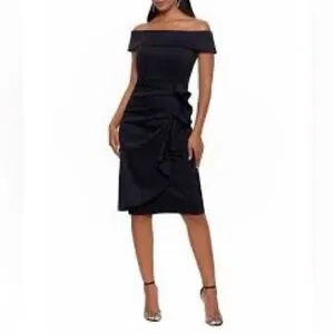NWT Xscape, Elegant Black Off-Shoulder Dress. Built-in bra, which makes this so convenient.