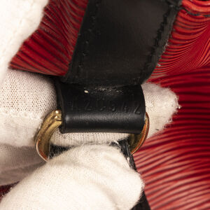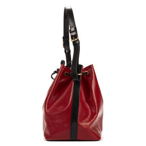 Louis Vuitton Shoulder Bag Noe Bicolor Black Stitching PM in Red/Black Epi and Golden Brass hardware. The product is in Very Good Condition (AB).