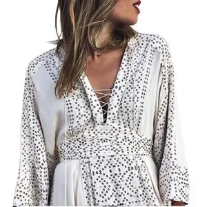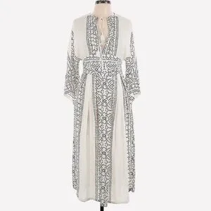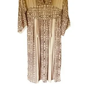 Showcase your inner rock goddess in this beautiful ivory and brown flowy maxi dress From the Free People “hand made” line
