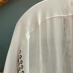 flaw: faint pen/ink mark on back left shoulder: appears to be removable. See last pic.I didn’t want to wash it as it is NWT. However, happy to try and remove for serious buyers before selling.