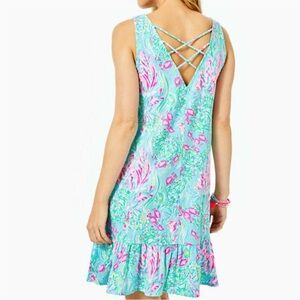 Gently worn 2-3x Lilly Pulitzer Kristen Flounce Dress Size Small, print is Amalfi Blue Best Fishes. Super soft Pima cotton, gorgeous print!