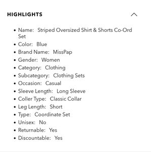 . Tags:MISSPAP Striped Oversized Shirt And Shorts Co-Ord Set Size 8