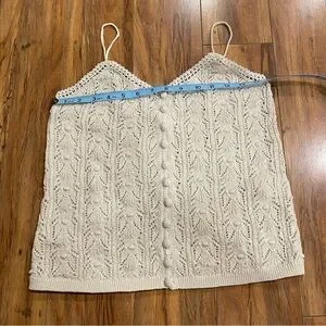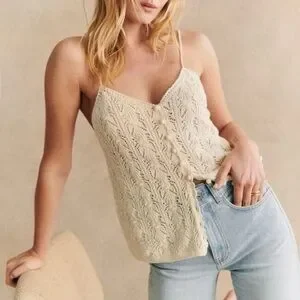 Sezane Francisco Cream Knit Crochet Cami Tank Top Size S