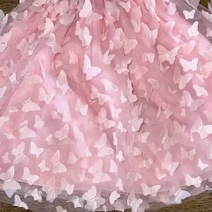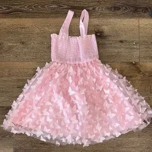 Charming pink dress with butterfly accents. Perfect for special occasions or dress up.