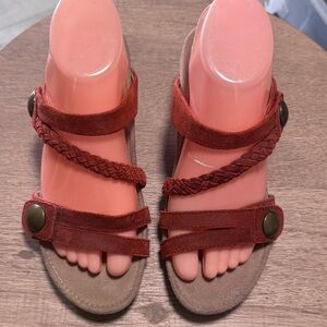 AETREX Womenβs Platform velcro Adjustable Red Suede Strappy Sandals size 7