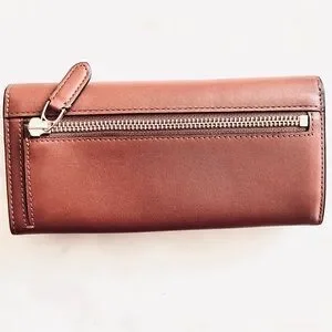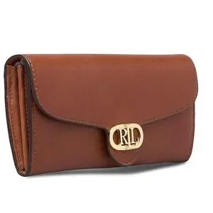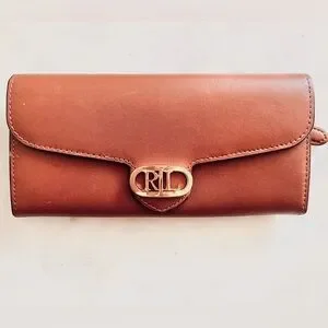 This sophisticated Ralph Lauren wallet showcases a minimalist design in rich brown leather, highlighted by a Add a touch of luxury to your accessories collection with this Ralph Lauren leather wallet in a classic Tan shade. Crafted from 100% genuine cow leather, this wallet features a sleek, elongated silhouette and striking gold-tone clasp that gives it timeless elegance.