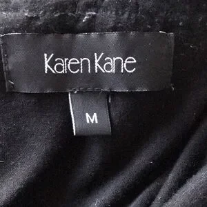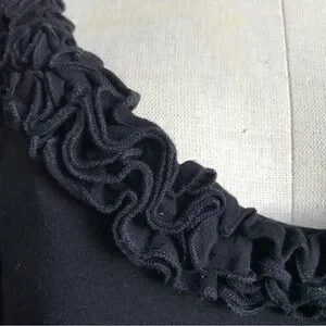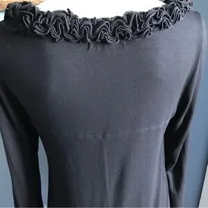 Karen Kane, black mini dress, line A, long sleeves, ruffle detail on scoop neck. T-shirt material. Size M. Used