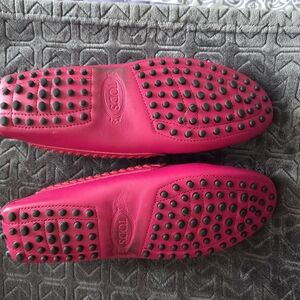 Experience the perfect blend of style and comfort with Tod's pink flats. These loafers feature a classic penny loafer design with a striking metallic gold accent across the vamp. Crafted with moccasin-style stitching, they offer a casual slip-on design ideal for everyday wear.