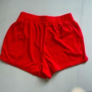 Stay comfortable and stylish with these vibrant coral terry cloth shorts. Perfect for casual outings or lounging at home.