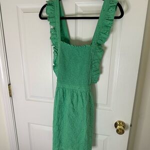 Step into effortless style with this sleeveless green sundress from Lulu's, featuring a charming square neckline and playful ruffled tiers. Perfect for a casual day out or as a wedding guest, this dress combines a fresh, summery feel with a modern silhouette. The vibrant green hue and tiered design make it a standout choice for any resort wear occasion.