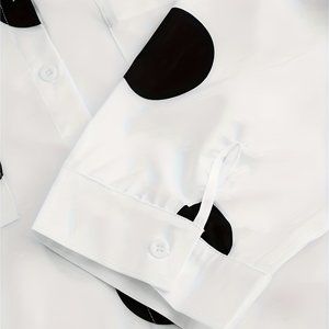 Passion Polka Dot Print Dipped Hem Casual Button Front Long Sleeve Blouse
