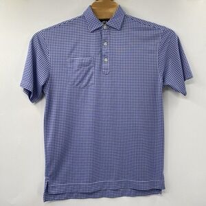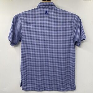 For sale is this Footjoy Men's Medium Blue White Plaid 3 Button Short Sleeve Golf Polo. Polo is in excellent condition! No holes or stains!