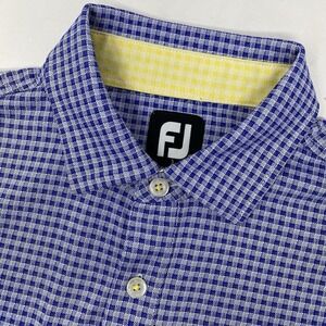 Footjoy Men's Medium Blue White Plaid 3 Button Short Sleeve Golf Polo