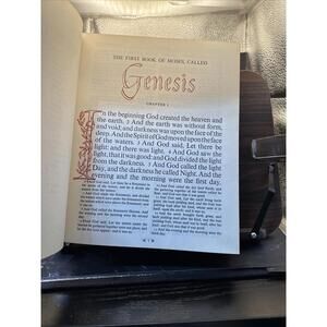 The Holy Bible Rembrandt Edition Authorized King James Version 1973 is a vintage illustrated Bible featuring stunning artwork by Rembrandt Harmenszoon van Rijn. Published in 1977 by Consolidated Book Publishers in Chicago, this hardcover Bible is a nonfiction narrative intended for young adults and adults. It includes features such as faux leather binding, maps, a sewn-in silk marker, and gold gilded page edges, making it a beautifully crafted and visually appealing edition for those interested in spirituality and religious texts.