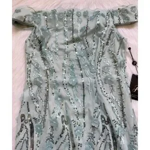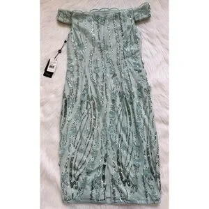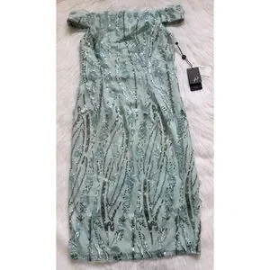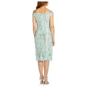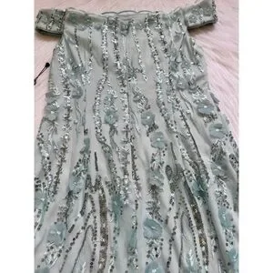 NWT Adrianna Papell Beaded Off Shoulder Dress Sea Glass 💗
