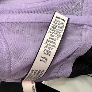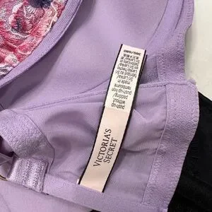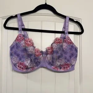 Embrace elegance with this Victoria's Secret bra, featuring a stunning purple and pink floral design. The underwire style offers excellent support with molded cups and adjustable straps for a perfect fit. Ideal for both comfort and style.