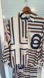 This Boutique outfit is truly elegant and stunning. The blouse is a batwing style and is very generous, however it lays in such a way, it does not look big. I would say this would fit size L-XL. The colors are off white, navy, red and dark green