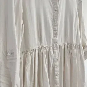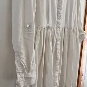 Elegant white shirt dress with button-up front. Features a classic collar.