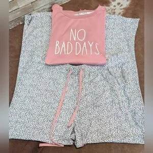 Rae Dunn Pink Pajama Set with Uplifting Message " No Bad Days" Animal Print PJ's