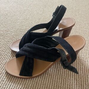 Experience the perfect blend of style and comfort with J. Crew's black and brown sandals. Featuring crisscross straps and a minimalist design, these sandals are ideal for warm weather outings. The contrasting colors add a touch of elegance to any casual ensemble. Size 9.5 - brand new, never worn