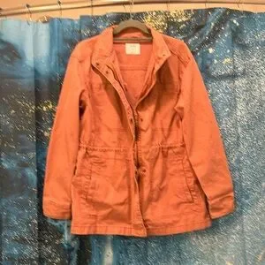 Old Navy Women's Utility Jacket Size Medium Orange Zip Front Drawcord Waist