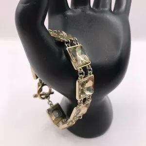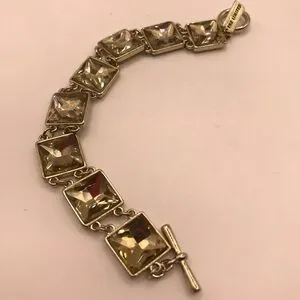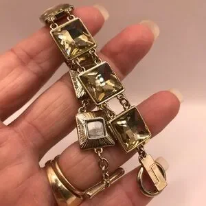 This exquisite bracelet from The Limited showcases a bold geometric design with gold-toned metal links. Its substantial width and linear pattern make it a standout piece, perfect for adding a touch of luxury to any ensemble.
