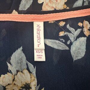 Xhilaration Navy Floral Sheer Short Kimono Cardigan XS/S Whimsigoth Dark Fairy