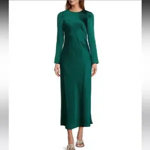 Emerald Green NWT Antonio Melani Asher Satin Crew Neck Long Sleeve Midi Dress