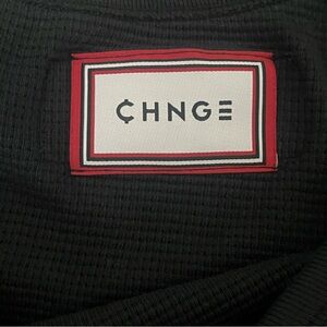 Black tank featuring a bold CHNGE patch. Red and white accents. Powerful!
