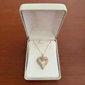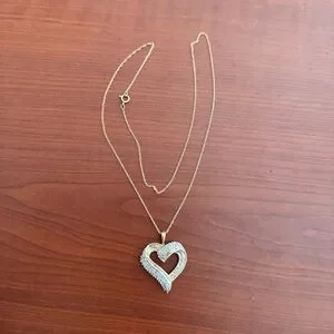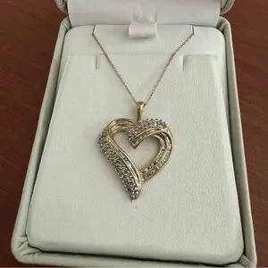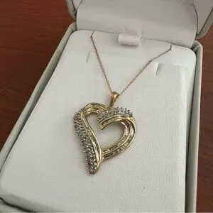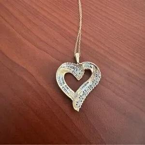 Diamond Heart Necklace 1/2 ct tw Round & Baguette 10K Yellow Gold 18"