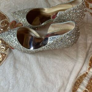 Badgley Mischka Silver Glitter Heels Timeless Elegance