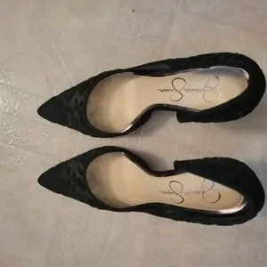 Elevate your style with these stunning black stiletto heels from Jessica Simpson. Featuring a sleek pointed toe and a high stiletto heel, these shoes are perfect for adding a touch of sophistication to any outfit. The luxurious texture and elegant design make them a must-have for any fashion-forward wardrobe.