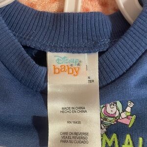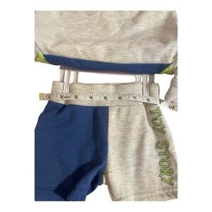 Stylish baby toddler outfit with a color-blocked sweatshirt and shorts. Features blue, gray, and green colors. Disney set and then an extra pair of shorts. All 0-3 months!