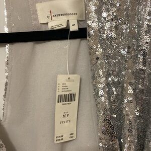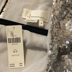 New with tags, anthropology, sequin dress, lined, petite medium, Electic waist with tie.