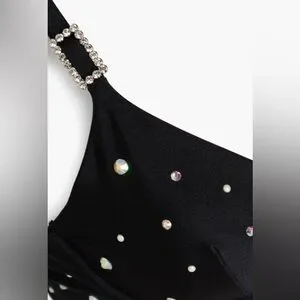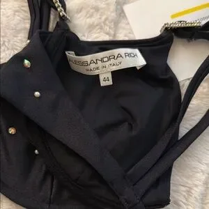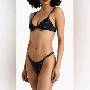 Stunning Alessandra Rich crystal-embellished underwired bikini in classic black. This ultra-glamorous two-piece features sparkly crystal accents, underwire support, and luxe Italian craftsmanship. Originally retailed for $620 — grab it here for a fraction of the price.
