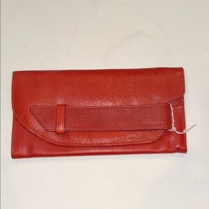 Elegant red leather clutch wallet, perfect for any occasion. Crafted with quality materials for a stylish look.