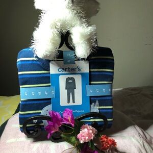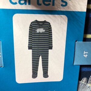 Stylish navy pajama set with yellow stripes by Carter's. Ideal for cozy nights. Experience ultimate comfort with Carter's pajama set, featuring a soothing Blue and Yellow color palette. This pajama set is designed for a cozy night's sleep, ensuring you stay snug and relaxed. Perfect for lounging or bedtime, these pajamas offer a blend of style and comfort. This item is Brand New with tags. Size 4 T / This item is stored in a pet and smoke free environment. Message me, with any questions or Offers. Thank you for visiting the closet of the Crazy Vendors.