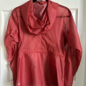 Experience the perfect blend of style and functionality with this red utility jacket from Lululemon Athletica. Crafted from a smooth, water-resistant fabric, it features a full-length front zipper and a practical hood, making it ideal for light outdoor activities.