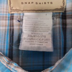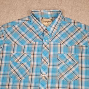 Wrangler Western Pearl Snap Shirt Mens 2XLB Big Blue Plaid Short Sleeve Pockets