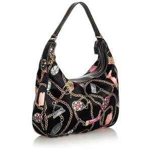 RARE Gucci Satin Medium Charmy Shoulder Bag Black Multicolor Designer Purses