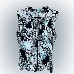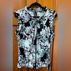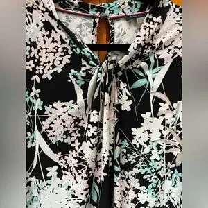 Tommy Hilfiger Womens Floral Print Knot Neck Knit Top Black Multi LG (US 12-14).