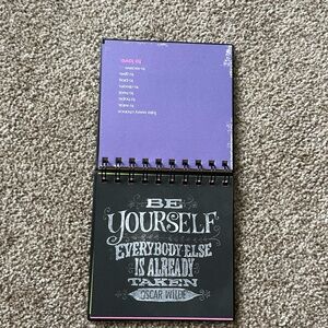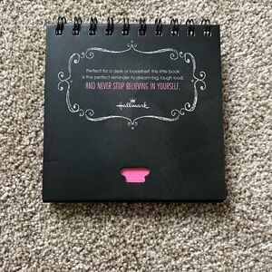 Spiral-bound book with motivational quotes. Black cover with white and colorful text. Perfect for daily inspiration.