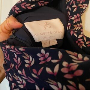 This elegant dress by Gal Meets Glam features a flattering fit and flare silhouette, perfect for wedding guest occasions. The blue and white design is complemented by 3/4 bishop sleeves and a sophisticated mock neck, offering a timeless and chic look.
