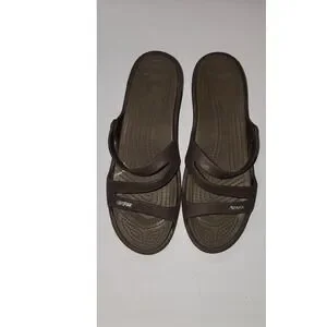 Crocs Sienna Slides Wedge Sandals Brown Comfort Casual Shoes Size 9W