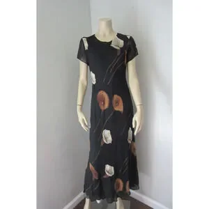 Benjamin A Women's Black Sheer Floral Printed Pattern Short Sleeve Maxi Dress
