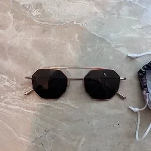 Experience a blend of modern elegance and vintage charm with WONDERLAND's hexagonal sunglasses. Featuring a sleek gold frame and contrasting black lenses, these accessories offer a minimalist yet striking design. Perfect for adding a touch of sophistication to any outfit.