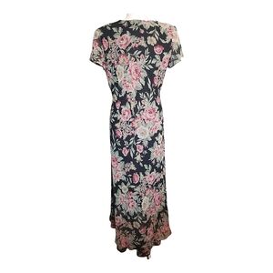Positive Attitude Black with Pink Floral Flutter Sleeve Maxi Dress