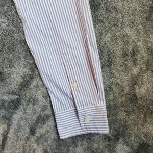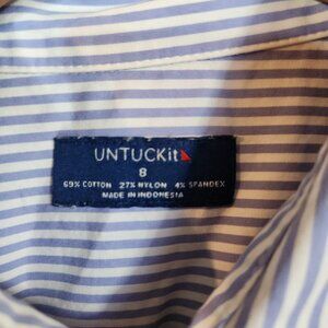 UNTUCKIT Women Blue White Pinstripe Front Tie Shirt Dress 8 Long Sleeve Button