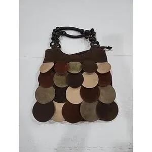 Womens NWT Boho Aldos Faux Leather Wooden Beeded Shoulder Purse Hand Bag. Zipper works, and beads are all intact beads that look like they are worn distressed. The purse has a little mark close up,it was originally mine, but I never used it. Other than that, I never have used it. You can check inside.
